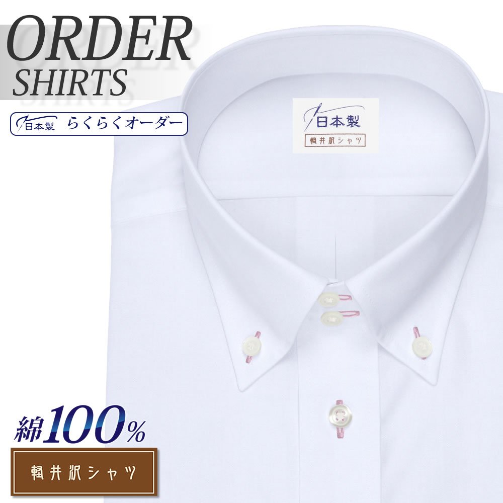 オーダーシャツ デザイン変更可能 ワイシャツ Yシャツ オーダーワイシャツ メンズ 長袖 半袖 七分 大きいサイズ スリム らくらく オーダー 日本製 形態安定 綿100% 軽井沢シャツ ボタンダウン ホワイト無地 [R10KZBB24] 送料無料