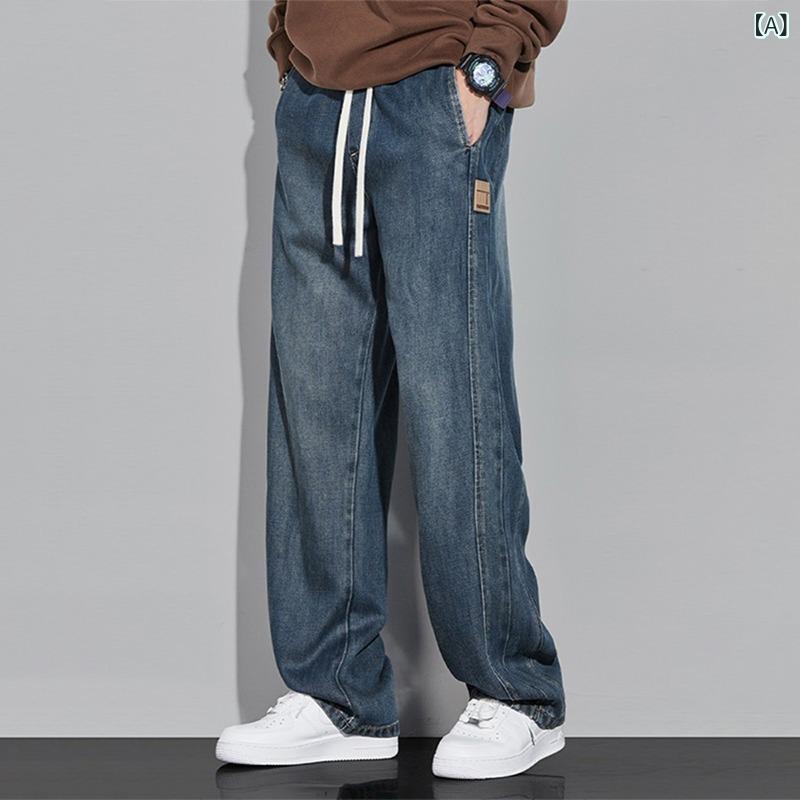 デニム メンズ 水洗い加工 ストレートパンツ ワイドレッグパンツ 薄手 ズボン ジーパン ブルージーンズ ブラック デニムパンツ ゆったり ヴィンテージ風 ウォッシュ加工・カテゴリ: メンズ・スタイル: レトロ・パンツタイプ: ストレートパンツ・フィット: ルーズ・パンツ丈: フルレングス・ウエスト: ミドルウエスト・フロント: 紐・厚さ: 薄手・対象年齢: 成人・対象: 男性・主な素材: ポリエステル繊維・素材: 化学繊維混紡・特徴: 水洗い加工・ディテール: ポケット装飾・ストレッチ: マイクロストレッチ・裾: ストレート・加工: アイロン不要・カラー: ブルー.ブラック・サイズ: M.L.XL.2XL.3XL.4XL.5XL