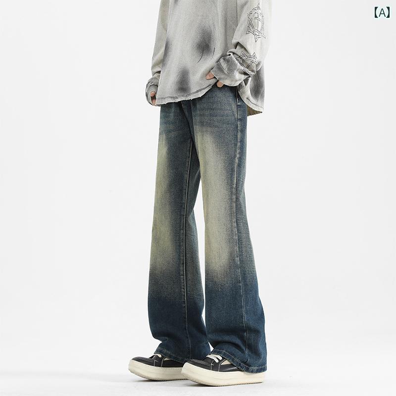 フレア パンツ 男性用 男の子用 アメリカン フレアジーンズ 夏用 細身 ゆったり ストレート ワイド レッグ パンツ ストリート クリーン フィット カジュアル