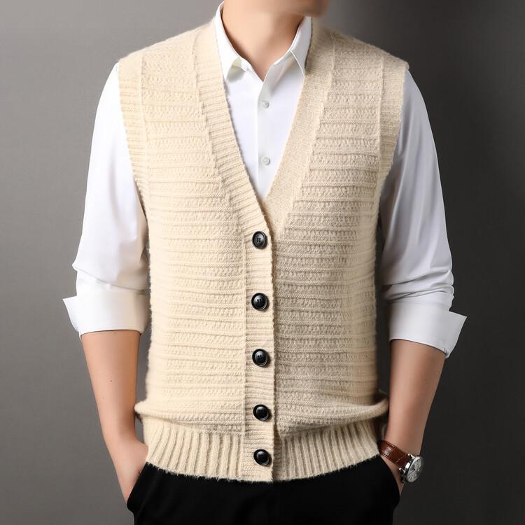 ・スタイル: カーディガン・フィット: ゆったり・ネックライン: Vネック・袖丈: ノースリーブ・厚さ: 普通・テイスト: ライトビジネス・デザイン詳細: リブ裾・対象: 若者・主な素材: 化学繊維混紡・素材: アクリル・素材混率: 40%・着用シーン: 日常使い・カラー展開: ホワイト、グレー、ブラック、アプリコット・サイズ展開: M、L、XL、XXL、XXXL・加工: シルケット加工・対象年齢: 成人・対象性別: 男性・カテゴリ: ニット