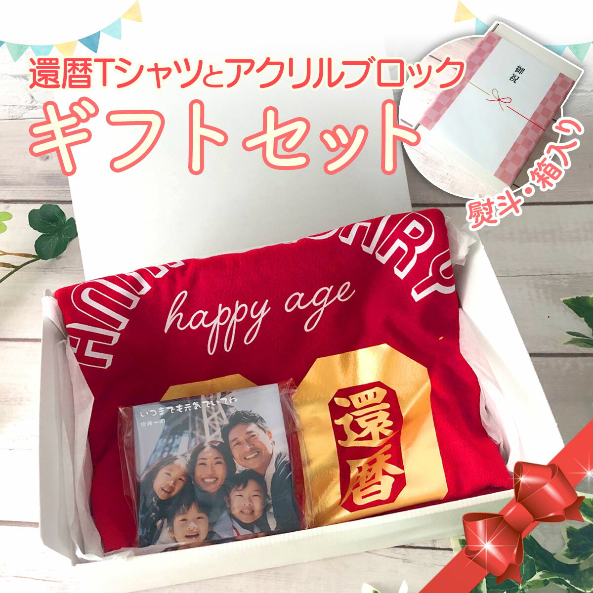 還暦祝い 還暦 tシャツ Tシャツ アクリルブロック オリジナル 箱入り ギフトボックス セット プレゼント 名入れ 赤い レッド 60歳 誕生日 おしゃれ メンズ レディース 男性 女性 父 母 おもしろ【還暦Tシャツ/アクリルブロックギフトBOX入りセット】