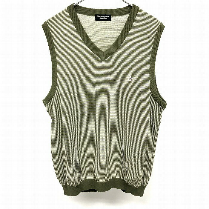 【全品PT20倍!!開催中|〜11/27(木)01時59分まで\Black Friday★ブラックフライデー/最大2千円OFFクーポンも】【中古】Munsingwear Grand Slam - L メンズ カットソー ベスト ボーダー Vネック 日本製 綿×アクリル グリーンカーキ×ホワイト×ピンク 緑系
