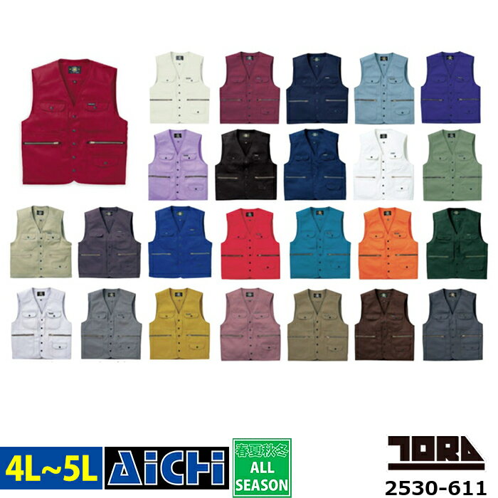 TORAICHI 寅壱 トライチ 作業服 2530-611 アーミー ベスト オールシーズン 4L 〜 5L | 大きいサイズ メンズ ブラック 黒 ネイビー 紺 シルバー グレー ホワイト 白 ブルー 青 レッド 赤 グリーン 緑 カラシ ブラウン パープル