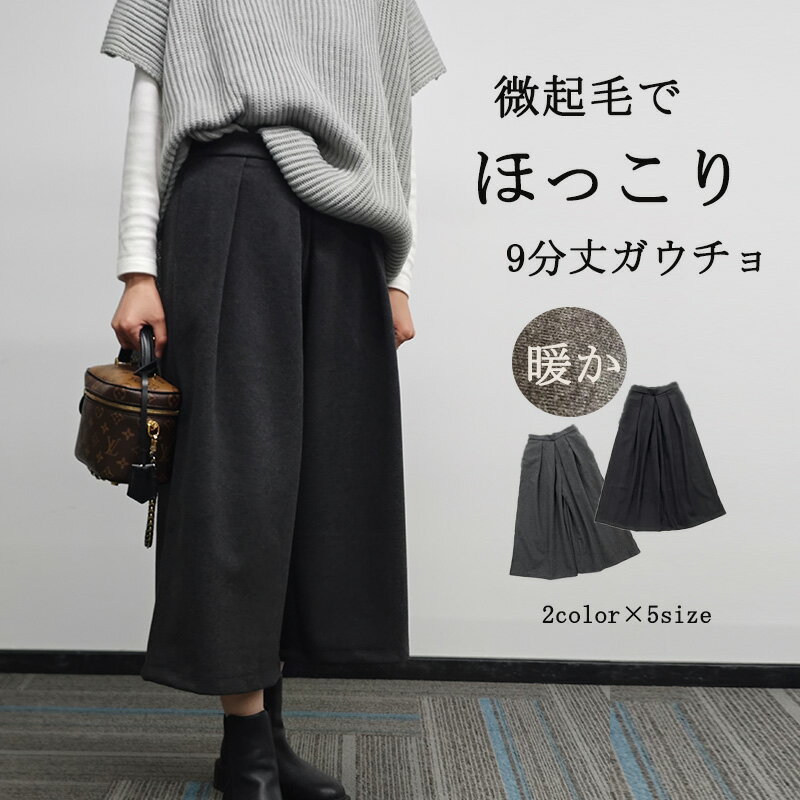ガウチョ ワイドパンツ 秋冬 ふんわり パンツ レディース 9分丈 暖かい スカーチョ ボリューム 冬 ゆったり 体型カバー アンクルパンツ 九分丈 体型カバー 美脚 細見え ガウチョパンツ ウール 防寒 保温 きれいめ 揺れる 落ち感