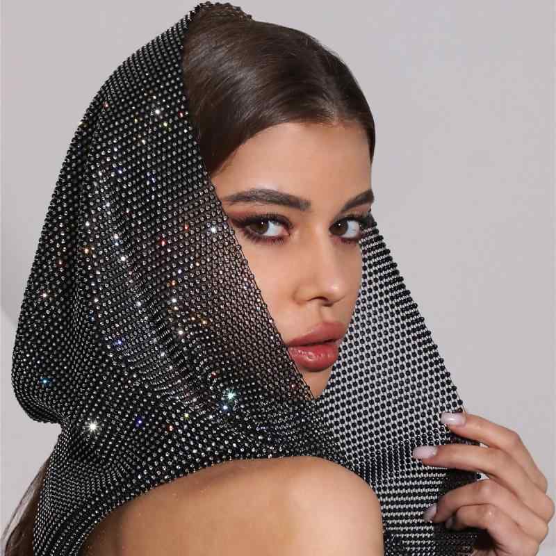 ヘッドスカーフ レディース メッシュ 網目 透け セクシー 個性的 無地 ラインストーン 切り替え ポリエステル 白 黒 フリーサイズ ストリート ファッション カジュアル 秋