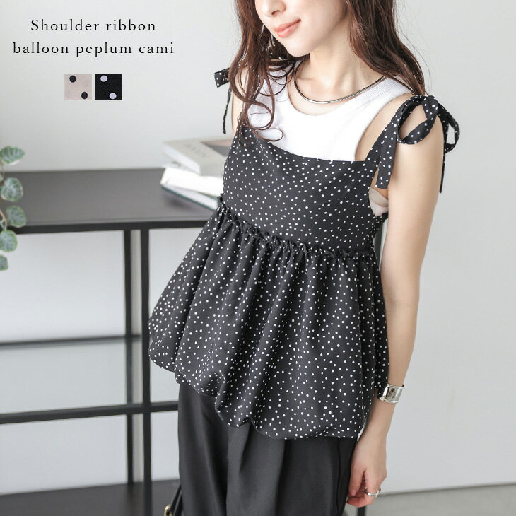 【半額クーポン対象】ショルダーリボン バルーンペプラム キャミソール 体型カバー レイヤード トップス レディース おすすめ おしゃれ フリーサイズ 2025秋冬新作 【lstpss25-1264】【即納:1-5営業日】【送料無料】メ込2