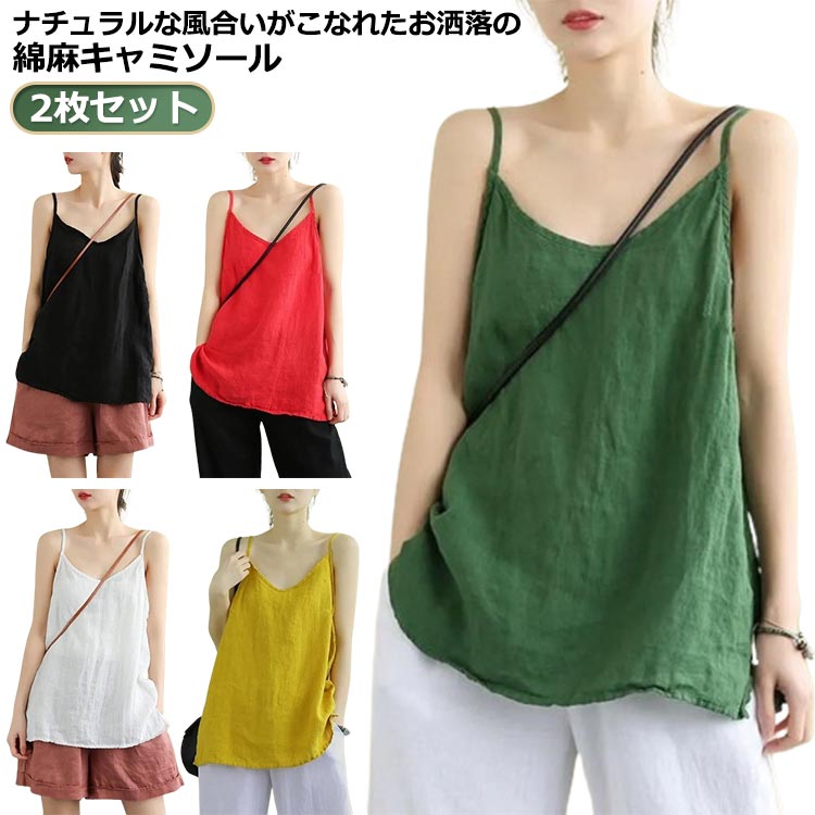 2枚セット 綿麻 キャミソール ナチュラル レディース レイヤード コットンリネン リネンキャミソール インナー 夏 タンクトップ 綿 麻 インナー トップス 肌着 リラックス ゆったり 体型カバー 吸湿 通気性 快適 下着 涼しい シンプル 送料無料