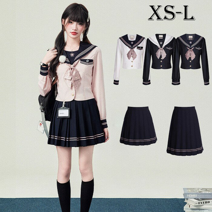 制服 セーラー服 スカート 上下セット 女子 入学式 卒業式 学生服 無地 ホワイト ピンク ネイビー 紺 レディース 長袖 プリーツスカート ショート丈 ロング丈 高校生 女子高生 シンプル 受験 結婚式 発表会 通学 JK 可愛い コスプレ コスチューム 仮装 イベント ma004lclcm7