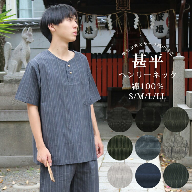 甚平 ヘンリーネック 父の日 ギフト プレゼント 綿100% さらっと着れる やらわかい シャリ感 じんべい おしゃれ 通常タイプ S/M/L/2L メンズ 男性 紳士 和服 無地感 柄 風合い 織り生地 黒 紺 灰色 ブラック ネイビー グレー コットン 父の日 部屋着 リラックス