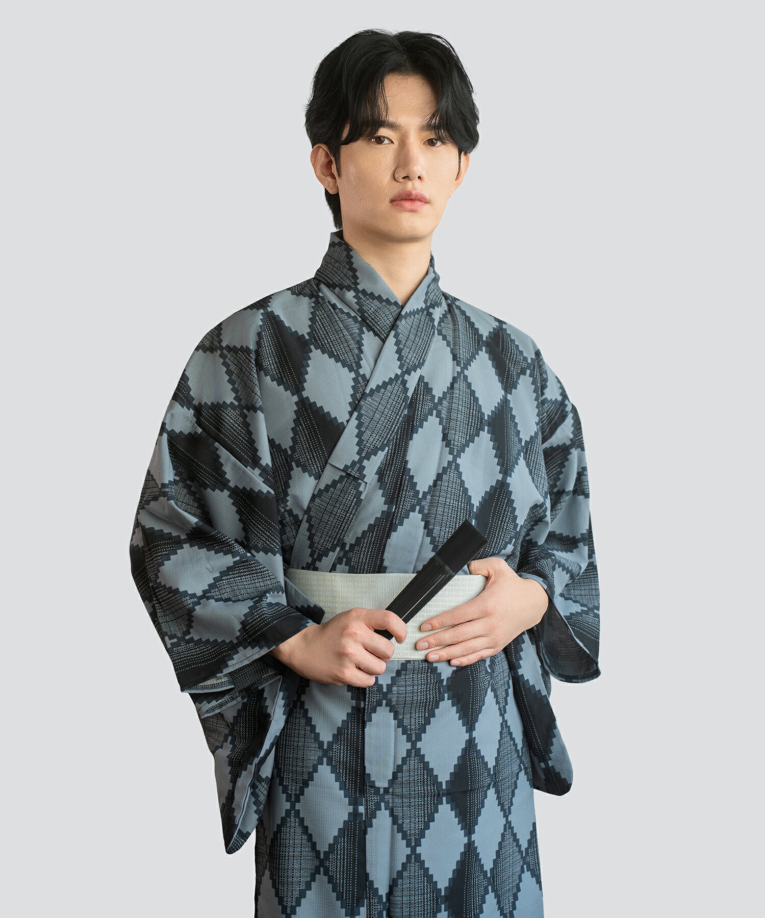 浴衣 メンズ 単品 夢千代 ブランド 綿麻 Lサイズ 灰色 格子柄 仕立て上がり 男性 浴衣 男性用 メンズ浴衣 大人 粋 おしゃれ 涼しい 夏祭り 花火大会 プレゼント 父の日 ギフト ゆかた yukata