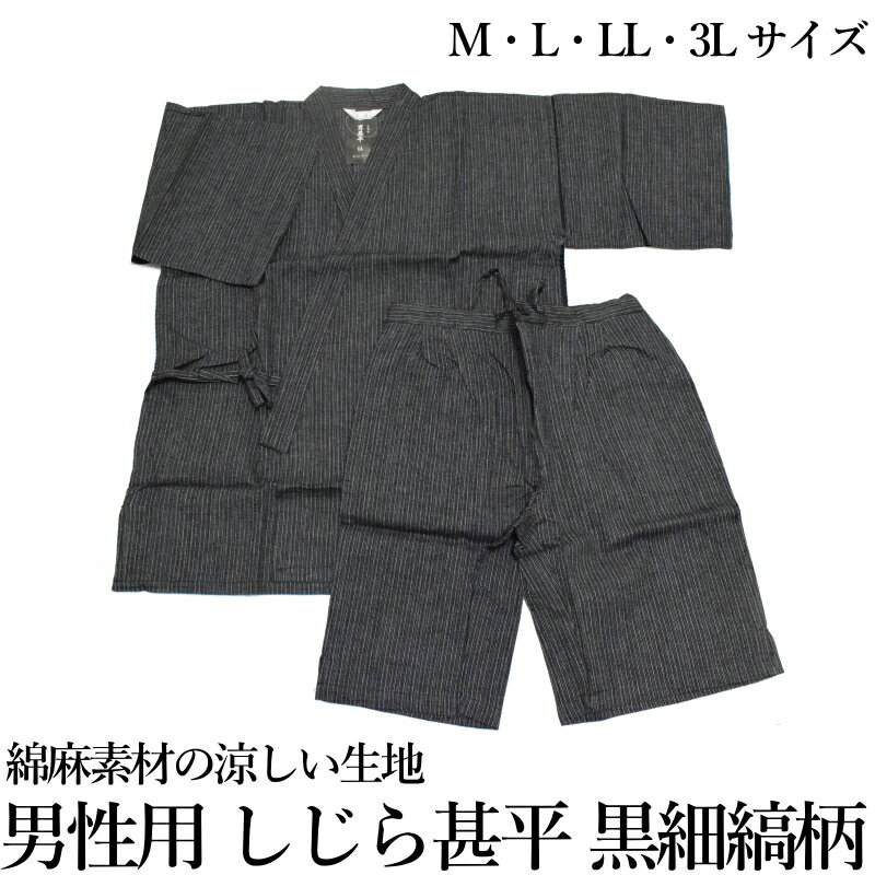 【送料無料】涼しい 綿麻 メンズ 男性 男物 甚平-黒色縞柄(各サイズ有/綿麻 綿85%麻15%/甚平 綿麻 麻 父の日/プレゼント用に包装紙で簡易梱包賜ります♪)