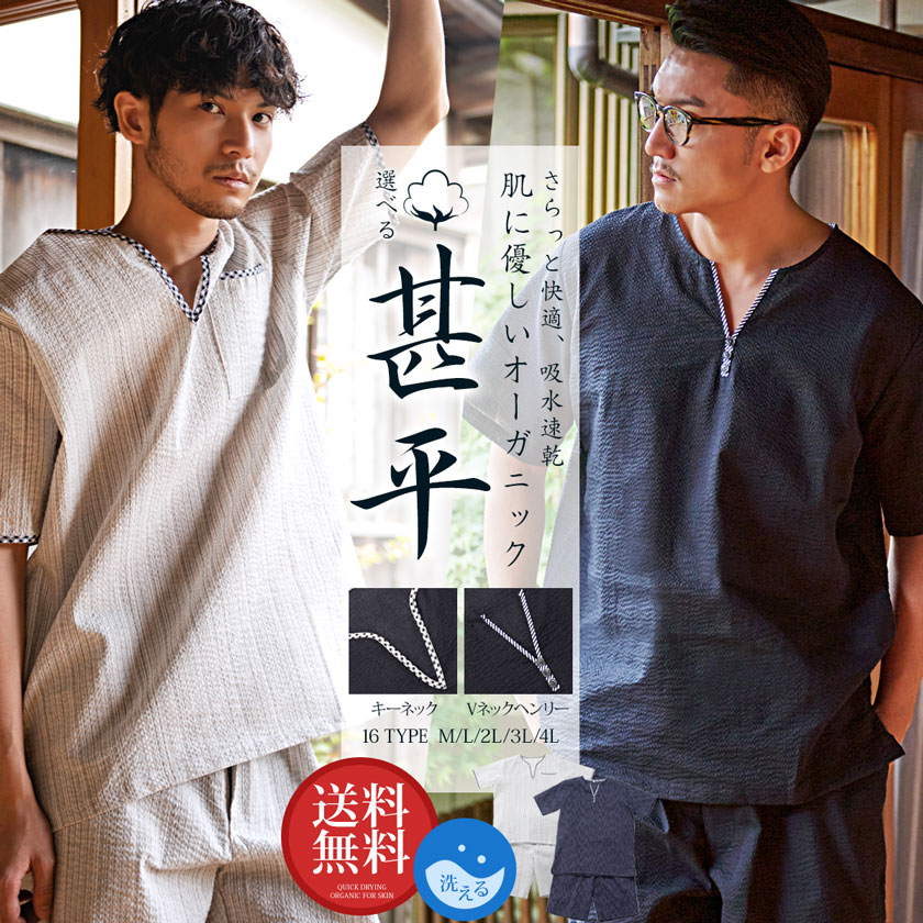 【送料無料】甚平 メンズ じんべい 浴衣 ゆかた 父の日 プレゼント 実用的 しじら織り 涼しい 甚兵衛 大きいサイズ 半袖シャツ Tシャツ 半袖 オーガニック ギフト 和服 彼氏 誕生日 ルームウエア 寝巻き パジャマ 部屋着 じんべえ 上下セット 夏 敬老の日 30代 40代 50代