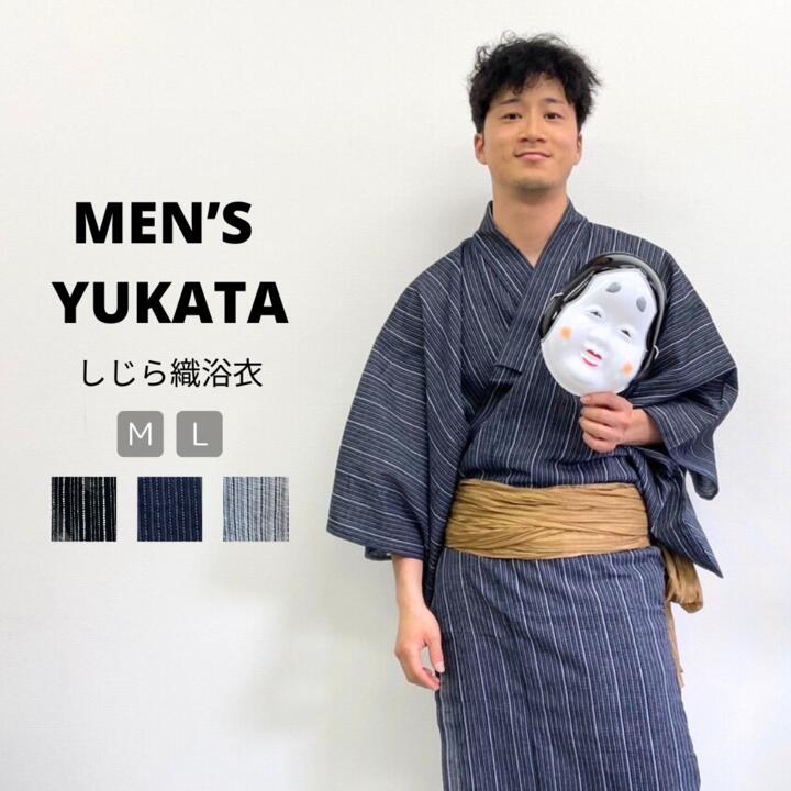 しじら織浴衣 メンズ単品|綿麻素材 涼しい夏の男性用浴衣 M・Lサイズ 選べる3色(ブラック・ネイビー・ホワイト) 紳士用 夏祭り 花火大会 盆踊り おしゃれ和服 ギフト 父の日