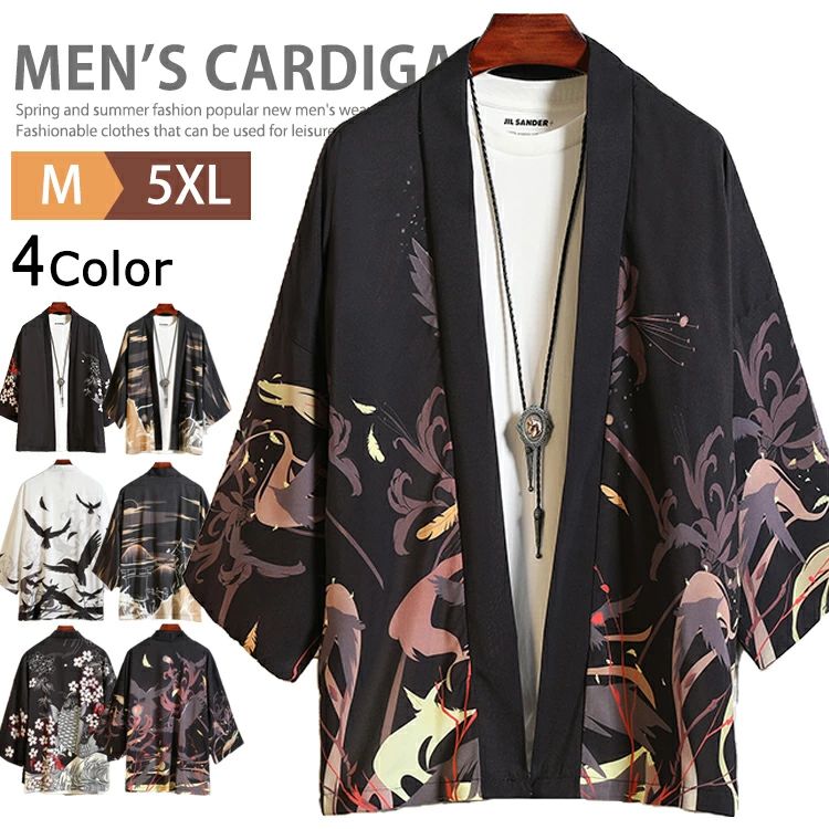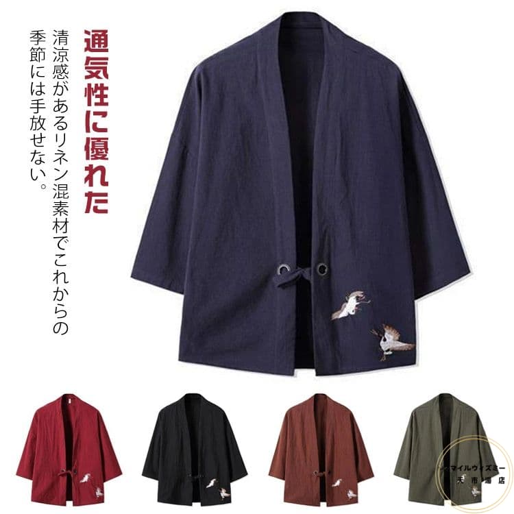 羽織 メンズ 着物 浴衣 七分袖 甚平風 浴衣風 UVカット カジュアル ジャケット カーディガン カーデ ポンチョ ゆったり ダンス 総柄シャツ 夏祭り 花火大会 ビジカジ トップス リモートワーク コスプレ 男性用 部屋着 在宅 薄手 春服 夏物 父の日