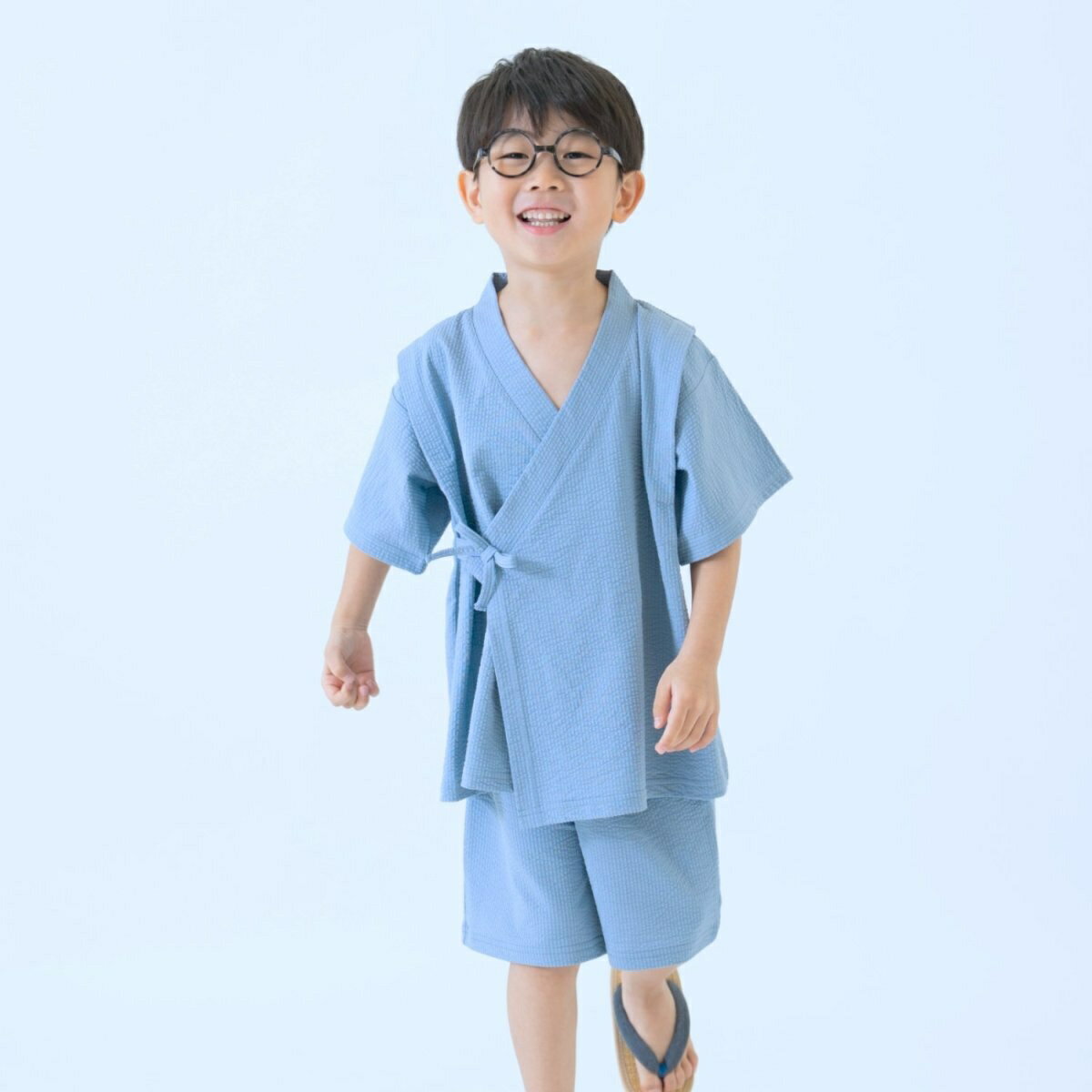 [型番:2252603]普段着にも最適!涼しいサッカー素材の甚平【デザインポイント】サッカー素材で肌離れが良く、涼しく快適に過ごせるカットソー甚平。作りリボン仕様で紐を結ぶ必要がなく、プランサーを使って簡単に着脱できます。【スタイリング】定番の甚平とは異なる素材感で、普段着としても違和感なく着こなせるスタイリッシュなデザイン。毎日のカジュアルコーデにぴったりな一着です。ーーーーーーーーー※モデル着用写真より商品写真が最も実物に近い色味です。※商品の色味は、撮影場所や光のあたり具合などにより色味が違って見える場合が御座います 。また、お客様のお使いのPCのモニター環境などにより色味が違って見える場合が御座います。予めご了承の上ご注文下さい。【透け感】やや透ける【生地の厚さ】普通【伸縮性】あり【裏地】なし【ポケット】あり【アジャスター】なし━━━━━━━━━━━━【 and D.petit main 】━━━━━━━━━━━━ Daily (日々の)、Dear (大事な )、 Dad (パパ) デイリーウエアを、大事な子どもと、パパにも! カジュアルで動きやすく着やすい、 パパもお揃いで着たくなるくらいファッショナブル。 デイリー使いできるロープライスアイテムを提案します。【 対象 】 3歳〜12歳 Girls・Boys(90〜150cm) 大人:M(ワンサイズ)紺:モデル身長:115 着用サイズ:120 サックス:モデル身長:114 着用サイズ:120 ■カラー:サックス、紺サイズ:上物:着丈×身巾×裄丈×下物:ウエスト×股上×股下×裾巾90cm:39.5x72x11×42x18.75x10.75x16.8100cm:43.5x77x12×44x20.25x11.75x17.3110cm:47x82x13×46x21.5x13x18.8120cm:51x87x14×48x22.75x14.25x20.3130cm:55x92x15×50x24x15.5x21.8140cm:60x98x16.5×53x25.5x24.9x23.3150cm:60x98x16.5×56x27x19x24.8※( )で表記されている数字はヌードサイズです。ヌードサイズとは衣服を身につけない身体のサイズです。お客様ご自身の身体サイズと比較してお選びください。 ■素材: ■お手入: 洗濯方法は商品タグをご確認ください >>商品のお取り扱い方法 ■原産国: 中国さらさらかんたん甚平/アンドディープティマイン(and D.patit main)サックス紺画面上と実物では、多少色具合が異なって見える場合がございます。
