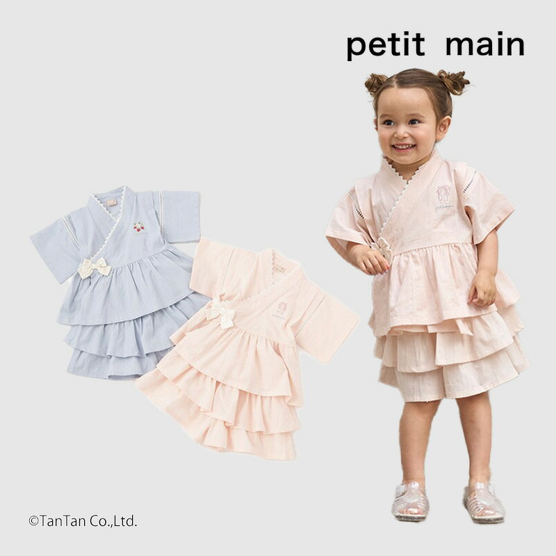 【30%】セール petit main【プティマイン】ペプラム フリル 甚平【人気 子供服 キッズ ベビー ゆかた 浴衣 上下 無地 ワンポイント 刺繍 レース リボン 花火 祭り 夕涼み 夏 おしゃれ かわいい 女の子 sale】9652616