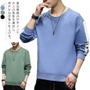 スウェット Tシャツ メンズ 長袖 トレーナー プルオーバー トップス クールネック 春秋 ファッション 切り替え ゆったり 大きい 体型カバー アメカジ スポーティ ストリート 男子 かっこいい 新作 カジュアルコーデ 父の日 10代 20代 30代 40代 ギフト プレゼント 送料無料