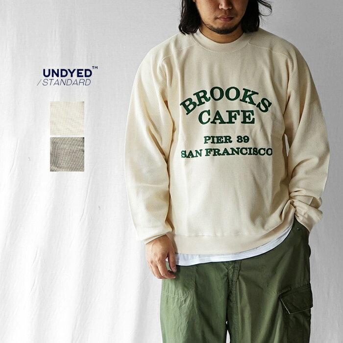 【30%OFFセール】UNDYED STANDARD アンダイドスタンダード ワッフルカットソー WAFFLE FACE CREW - CAFEE ワッフルフェイスクルー 25F307A ロンT 長袖Tシャツ オーガニックコットン 綿100% メンズ おしゃれ ブランド 日本製 サイズ02 サイズ03 サイズ04 プリント