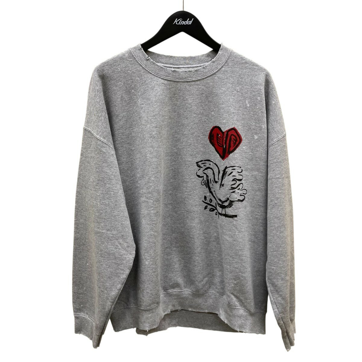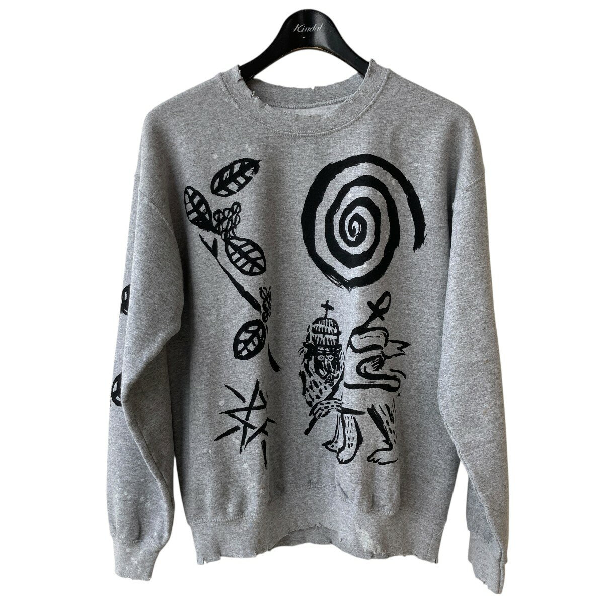 【中古】SASQUATCHfabrix.23AW VINTAGE SWEAT SHIRT OLIVE BRANCH ダメージ加工スウェット 23AW-CSS-001 グレー サイズ:XL【価格見直し】
