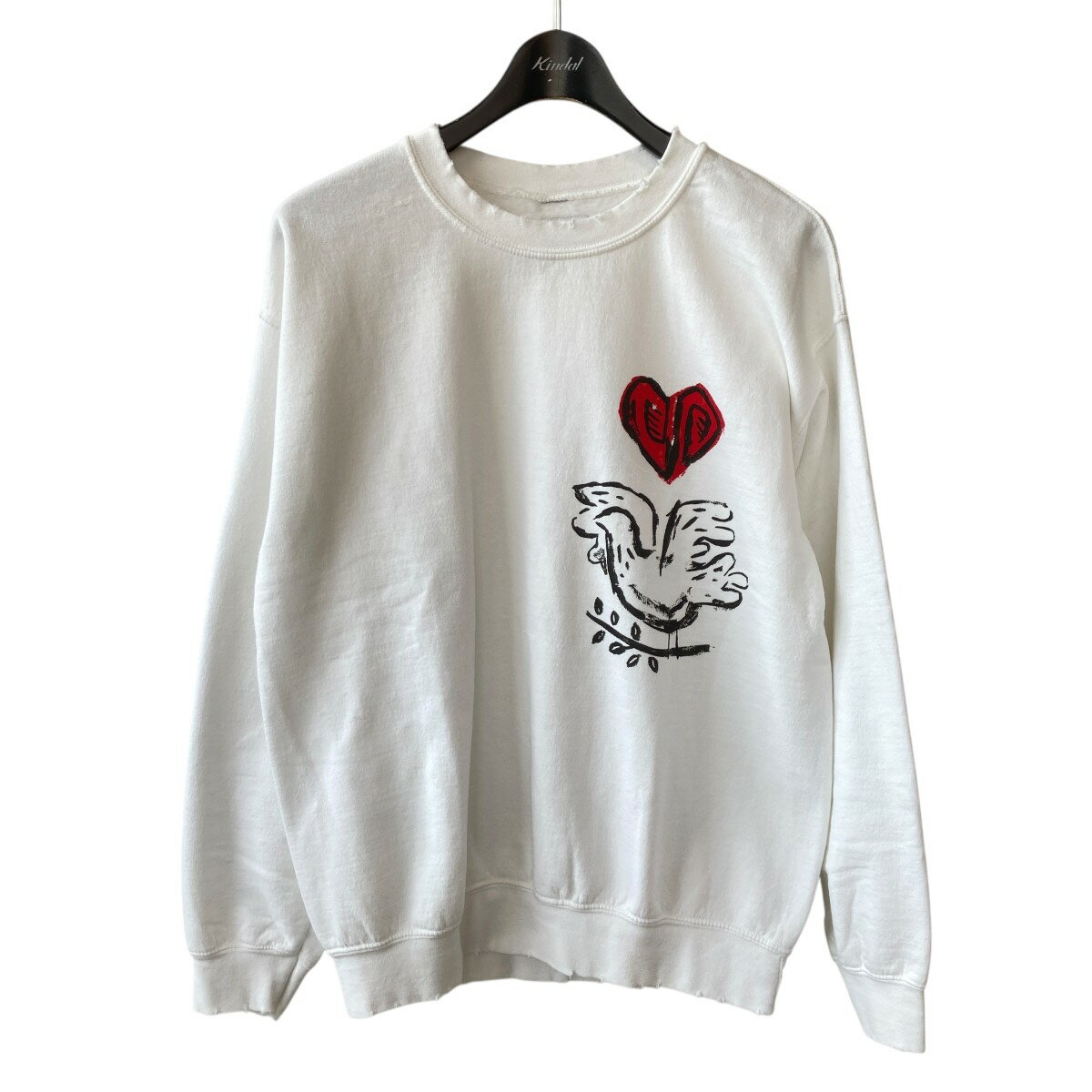 【中古】SASQUATCHfabrix. VINTAGE SWEAT SHIRTS OLIVE BRANCH 加工スウェットトレーナー 23AW-CSS-001 ホワイト サイズ:M 【290525】(サスクワァッチファブリックス.)