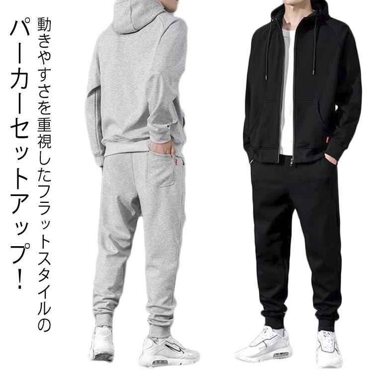 セットアップ スウェット パーカー 薄手 無地 ジップアップ 長袖 部屋着 運動服 長袖パーカー 無地 フード付き トレーニングウェ