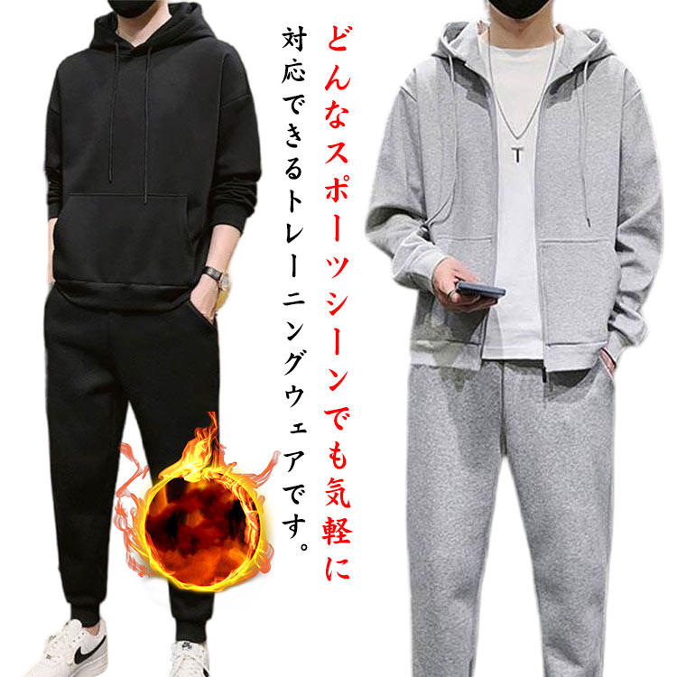 裏起毛 メンズ プルオーバー 上下セット スウェット 2タイプ*2厚さ選べる 裏起毛あり 裏起毛なし トレーニングウェア 裏起毛 セットアップ ジップアップ 運動服 長袖パーカー 無地 フード付き カジュアル スポーツウェア