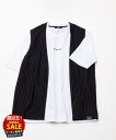 送料無料 ジレ ベスト メンズ 大きいサイズ 総柄 接結 ふくれ ジャガード ロゴ 刺繍 プリント 半袖 Tシャツ アンサンブル ノースリーブ トップス 白 黒 ホワイト ブラック ストレッチ セット 薄手 レイヤード 重ね着 ストリート系 ワークマン プラス サイズ