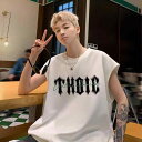 タンクトップ メンズ コットン 夏 美式 プリント ロゴ ゆったり リラックス カジュアル スリーブレス Tシャツ カットソー トップス 深灰色 白 黒