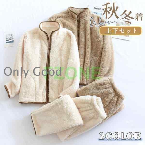 ボア もこもこ ルームウェア 上下セット レディース ふわふわ ボア ナイトウェア 秋冬 あったか 防寒 パジャマ 部屋着 ジップアップ 長袖 トップス パンツ 2点セット 冬用