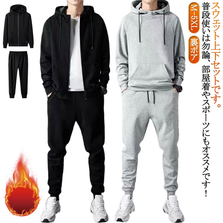 【送料無料】メンズ 裏起毛/裏ボア スウェット上下セット|ジップアップパーカー+ジョガーパンツ|極暖 防寒 セットアップ ルームウェア|厚手/薄手選べる|大きいサイズ L〜8XL