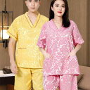 バスローブ レディース メンズ サウナ着 浴衣 大判サイズ ゆったり 綿混紡 ペア 春秋 汗蒸服 マッサージ リラックス 部屋着 ルームウェア ピンク系 イエロー系
