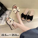 サンダル レディース ミュール 厚底 ヒール7.5cm リボン付き 可愛い 厚底サンダル ベージュ ブラック ウェッジヒール かかとなし つっかけ 普段履き サマー 夏 カジュアル かわいい ゴージャス リゾート 海 プール 旅行 シューズ
