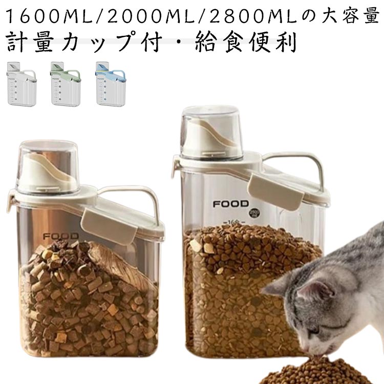 フードストッカー 保存容器 大容量 ペットフード保存 1600ml 2000ml 2800ml フードストッカー 目盛り付き 猫 ペットフードストッカー 犬猫対応 透明 防湿 外出先や旅行に最適 目盛り付き 密封可能 計量カップ付き 持ち運び便利 キッチン