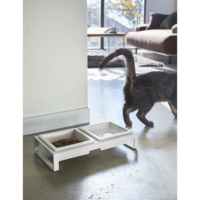 ペットフードボウルスタンドセット タワー ホワイト 04206 | 山崎実業 YAMAZAKI おしゃれ スタイリッシュ かわいい 便利 シンプル 餌皿 テーブル ドッグ キャット フード ボウル 器 ウォーターボール 水飲み 犬用 ネコ用 猫用 陶器