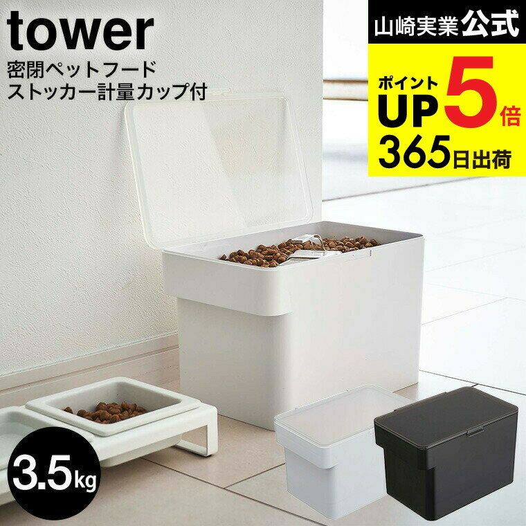《ポイント5倍!》密閉 ペットフードストッカー タワー 3.5kg 計量カップ付 tower 密閉容器 保存容器 フードストッカー ペットフード 保存 湿気防止 餌収納 おしゃれ 餌入れ エサ入れ ドライフード タワーシリーズ 白 黒 ホワイト ブラック 山崎実業 yamazaki