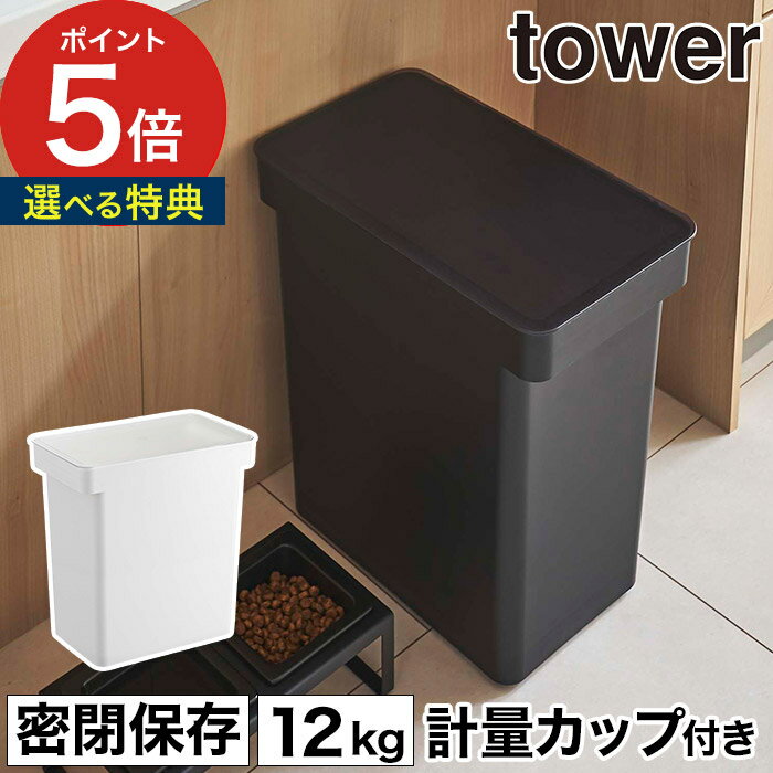 【365日出荷&当店限定特典付き】山崎実業 密閉ペットフードストッカー 6.5kg 計量カップ付 タワー tower 公式 キャットフード ドッグフード エサ入れ 大容量 12L 保存容器 犬 猫 ペット用品 ホワイト ブラック 5615 5616