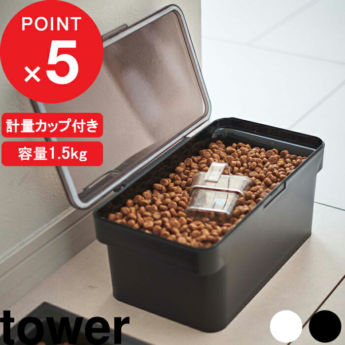 【レビュー特典】 tower 『 山崎実業 密閉ペットフードストッカー タワー 1.5kg 計量カップ付 』 ドライペットフード 犬 猫 ペット 保存容器 ストッカー 保存ケース 計量カップ 保存 密閉 密閉容器 収納 シンプル おしゃれ 公式 ホワイト ブラック 5609 5610 YAMAZAKI