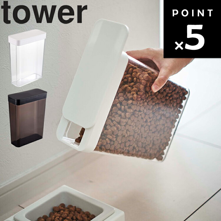 【12月5日はポイント最大10倍祭!】密閉 ペットフードストッカー タワー 1.5kg 計量カップ付 tower 密閉容器 保存容器 ペットフード 保存 フードストッカー 湿気防止 おしゃれ シンプル 餌入れ エサ入れ ドライフード タワーシリーズ 白 黒 ホワイト ブラック 山崎実業