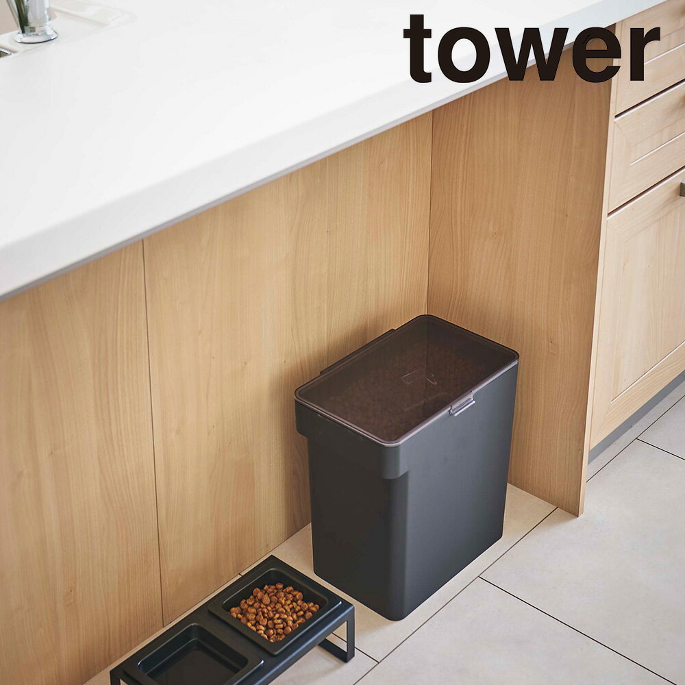 tower タワー 密閉ペットフードストッカー 12kg 計量カップ付 ペット 餌 エサ 保存 保管 容器 入れ物 箱 コンテナ 保存容器 収納 キャスター インテリア おしゃれ モダン シンプル 北欧 白 ホワイト 黒 ブラック 山崎実業 05617 05618