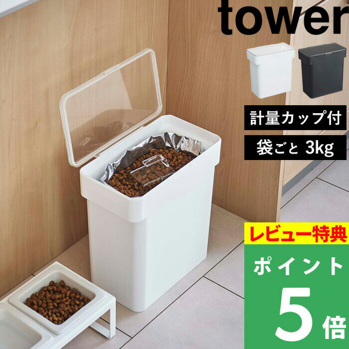 山崎実業 \ペット割で最大P5/ tower タワー 密閉袋ごとペットフードストッカー 3kg 計量カップ付き 【ラッピング対応】 【メッセージカード対応】 【クーポン対象外】 ペットフード ストッカー 保存容器 密閉 袋ごと おしゃれ 北欧 計量カップ 白 黒