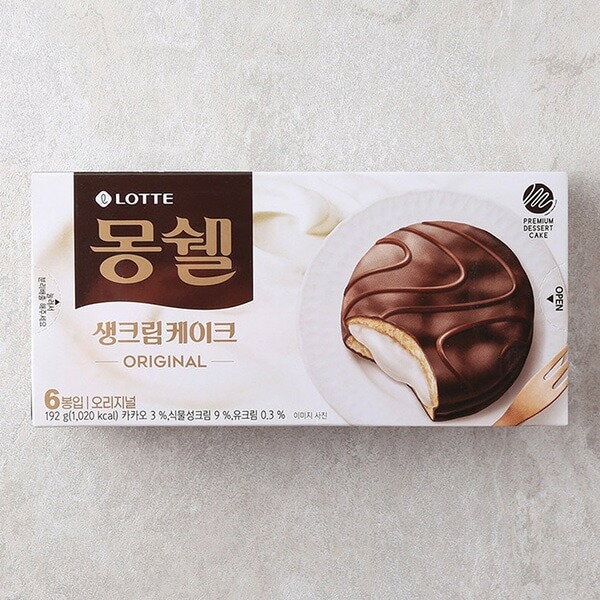 LOTTE モンシェル クリームケーキ オリジナル味 204g (34g×6個) ロッテ プレミアムクリームケーキ チョコレートケーキ 韓国お菓子 韓国食品
