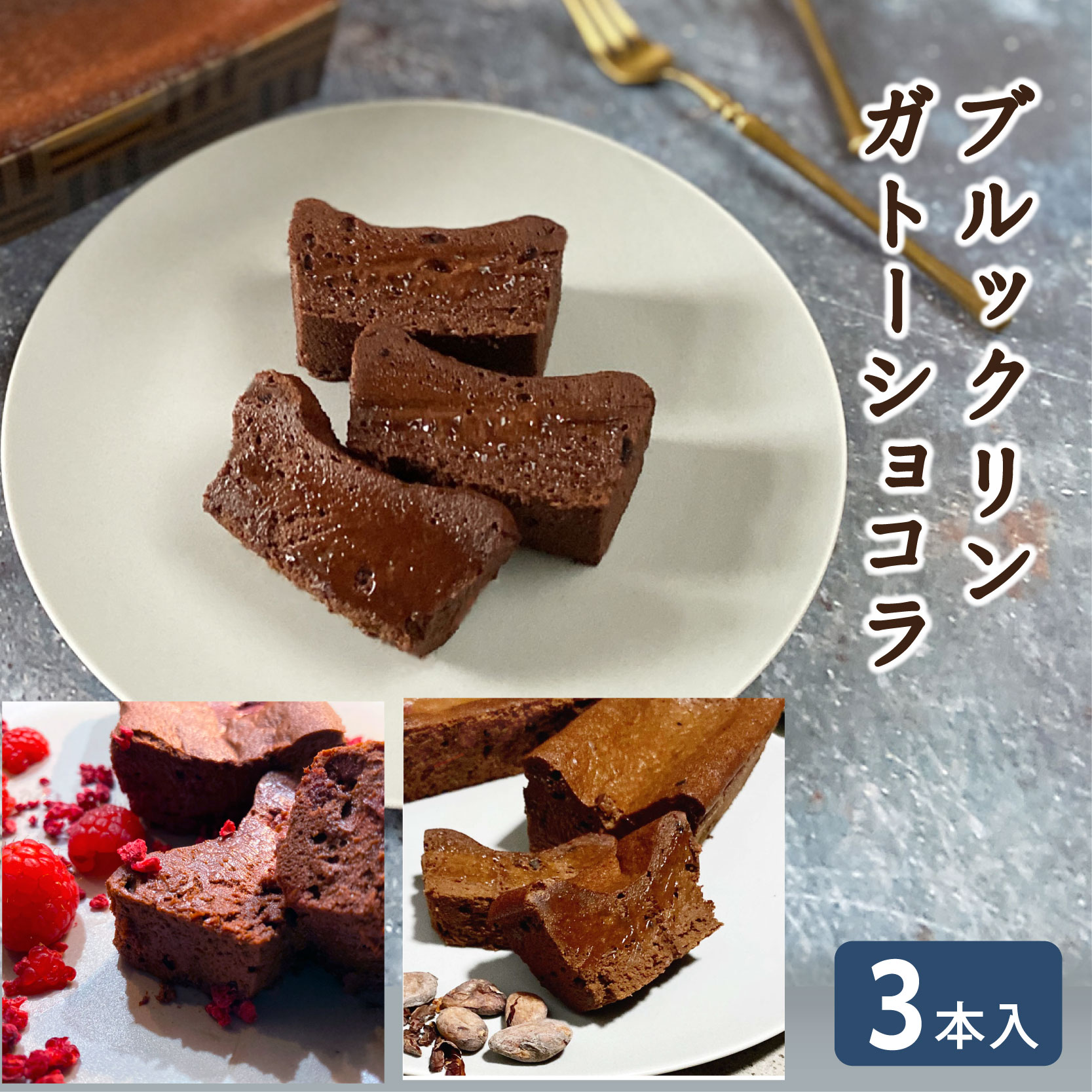 \ブルックリンガトーショコラ3つの味!/『パヴェノワール〔オリジナル/カカオニブ/フランボワーズ〕』3本入 チョコレート ケーキ お歳暮 御歳暮 お年賀 帰省 人気 誕生日 ギフト chocolate 洋菓子 焼菓子 お土産 手土産