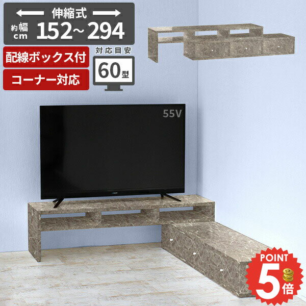 テレビ台 大理石調 鏡面 伸縮 完成品 おしゃれ テレビボード 60型 コーナー 脚付き TVボード 50インチ 伸縮テレビボード ラック 55インチ ローボード コード収納 テレビラック 配線隠し 低め 32型 薄型 43型 コーナー用 グレー コーナーボード 幅150 コーナーテレビボード ☆