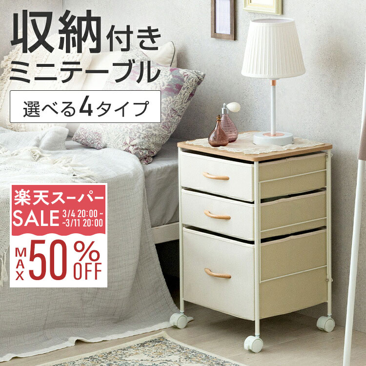【10%OFF★3/4 20時〜】ナイトテーブル サイドテーブル キャスター付き おしゃれ チェスト 幅40 3段 白 木製天板付き 北欧 布製 スリム ローチェスト クローゼット 衣類 収納 棚 押し入れ サイドデスク 収納ボックス 子供部屋 ミニテーブル ベッド横 cnc40-3 cnc40-3f