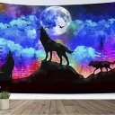 タペストリー キッズ 子供部屋用 リビング 寝室 狼 満月 サイケデリック パープル 壁掛け ウォールデコレーション 北欧 インテリア ポリエステル製 丸洗いOK