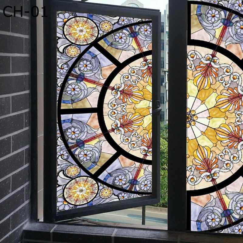 ステンドグラス 窓ガラスフィルム 花柄 教会 洋風 目隠し 遮熱 自粘型 裏面粘着 プライバシーフィルム 窓に貼るカーテン 結露防止シート 浴室 風呂 目隠し 食器棚 網入りガラス/ペアガラス適用