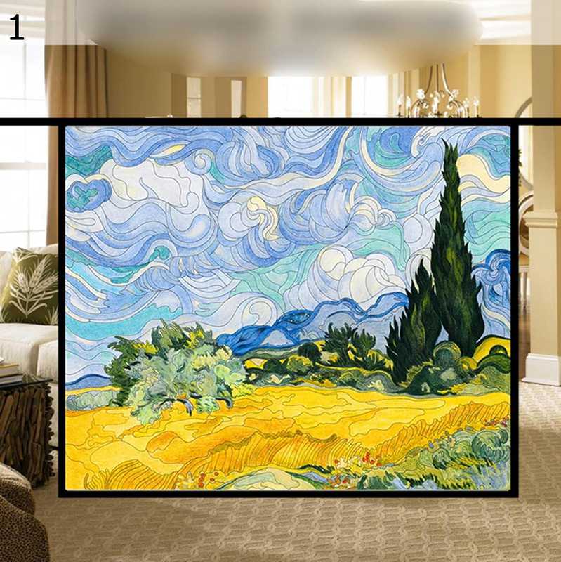 窓ガラスフィルム すりガラス 世界名画 ゴッホ油絵風 ガラス目隠しシート 遮光 遮熱 結露防止 バスルーム ベランダ 台所 ベッドルーム インテリア ステンドグラス 日差しよけ 水で貼るだけ 静電吸着