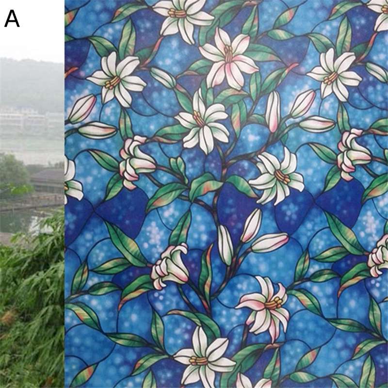 窓ガラスフィルム 百合柄 ステンドグラス 見えない 断熱 めかくしシート 教会の様式 貼ってはがせる 遮光 紫外線対策 すりガラス風 インテリア おしゃれ シール 水で接着 欧米風 教会 バス 寝室 お風呂