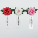 祝賀会・周年行事・式典・イベント・選挙・入学式・卒業式運動会に・・・ 名前入り胸に付けるリボンの徽章・胸章 <サイズ:中>名入れ筆耕付き・花とタレのセット ■花の直径 : 97mm ■長さ(縦全長) : 220mm ■色 : 赤・白・ピンク・黄の4種類 ■クリップ・プラスチック製(安全ピン付) ■リボン材質 : アセテート *ご注文時に備考欄に筆耕原稿を記入してください *量が多い場合はご注文後ショップより「筆耕原稿について」メールでご連絡させていただきますのでそちらに返信お願い致します ※価格は1個の価格です。 胸章 リボンバラ ラインナップ 特大 大 中 小 豆バラ 五方 筆耕付き マグネット 即日発送品 ネームプレート付き