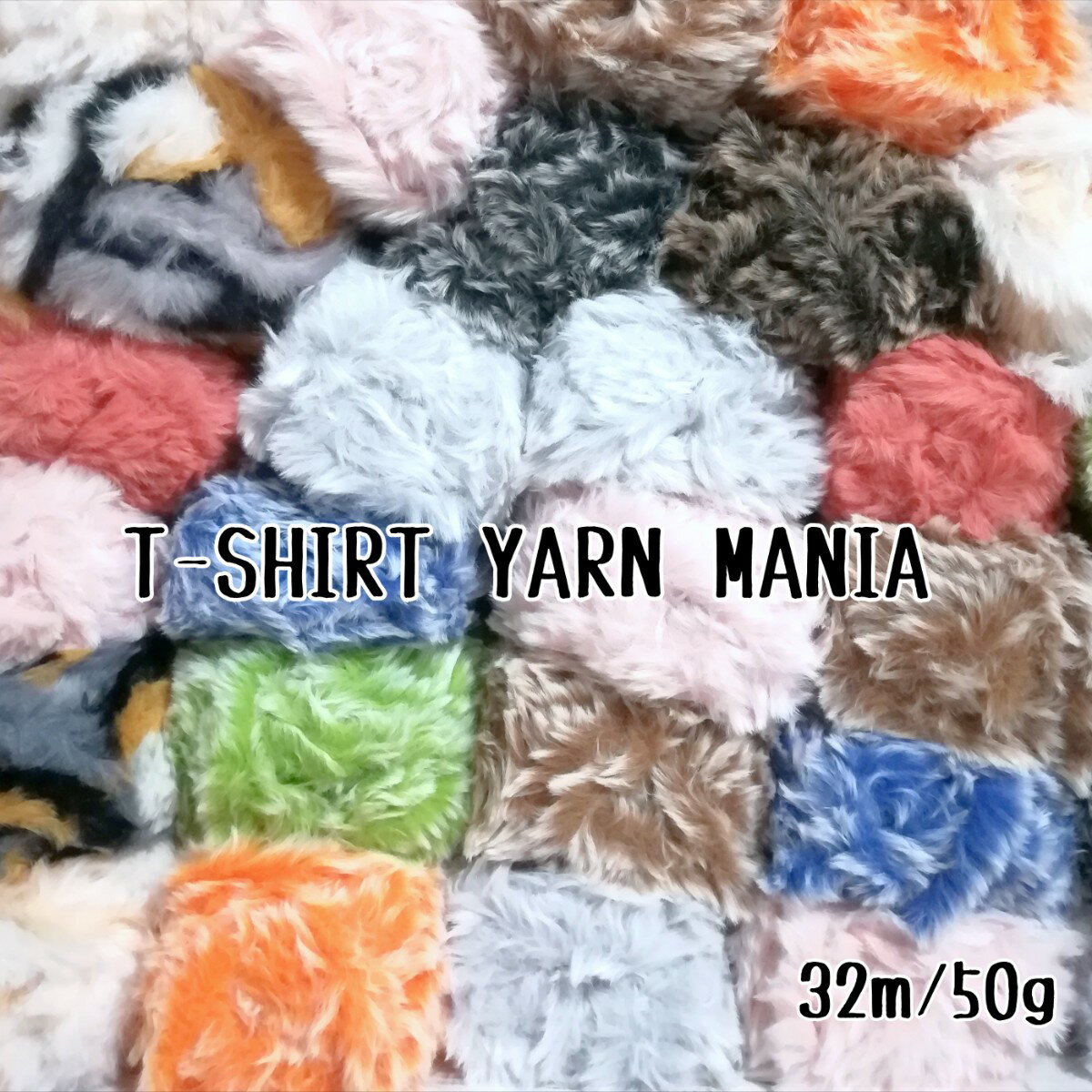 【全13色フェイクファー】T-SHIRT YARN MANIA Tシャツヤーンマニア ファーヤーン フェイクファー 毛糸 極太糸 1玉あたり約32m(50g) ファーバッグ アレンジ用 軽くてふわふわ 抜けにくい 糸 ポリエステル素材 ハンドメイド 材料 帽子 スヌード 手作りモール人形 作りに!